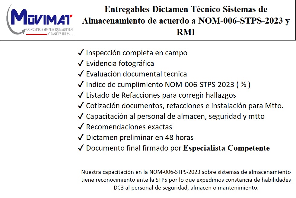 El Dictamen Técnico de Sistemas de Almacenamiento desarrollado por Movimats nace precisamente para resolver ese vacío: ofrecer una evaluación profesional, basada en estándares internacionales y evidencia técnica, que permita asegurar instalaciones más seguras, normadas y confiables.